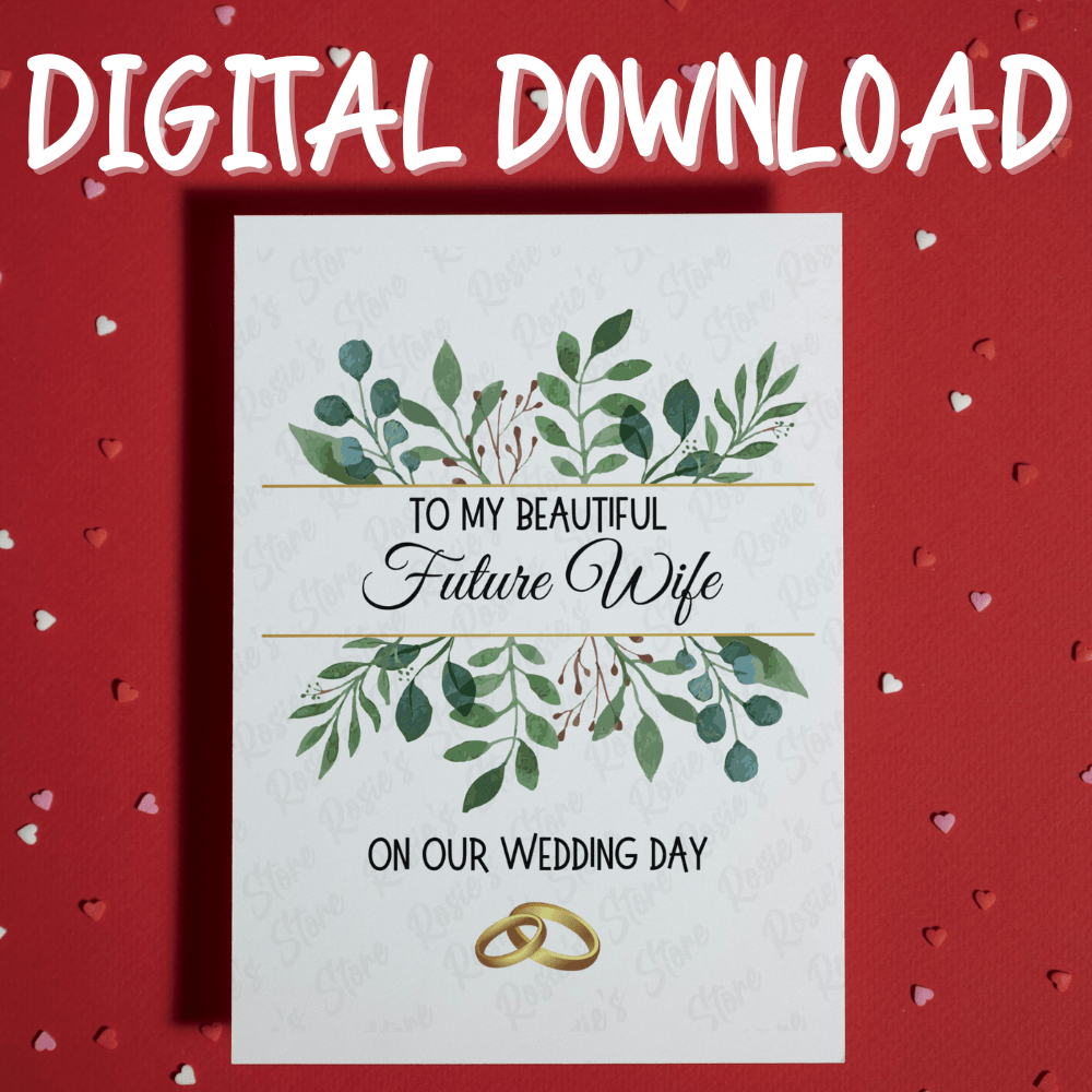 💍 Celebrate your love with this heartfelt printable wedding day greeting card for your future wife! 💍